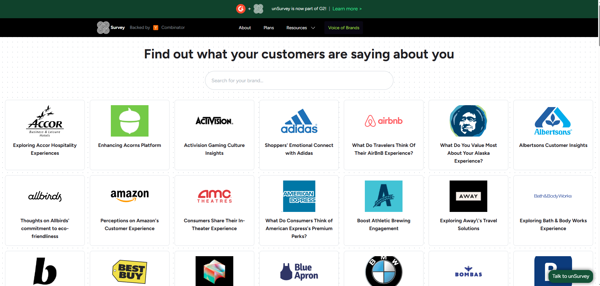 On June 10th, 2025, G2 announced they had acquired unSurvey, what they called a "YCombinator-backed, multi-agent AI system that conducts human-like, AI-moderated conversational-based interviews."
